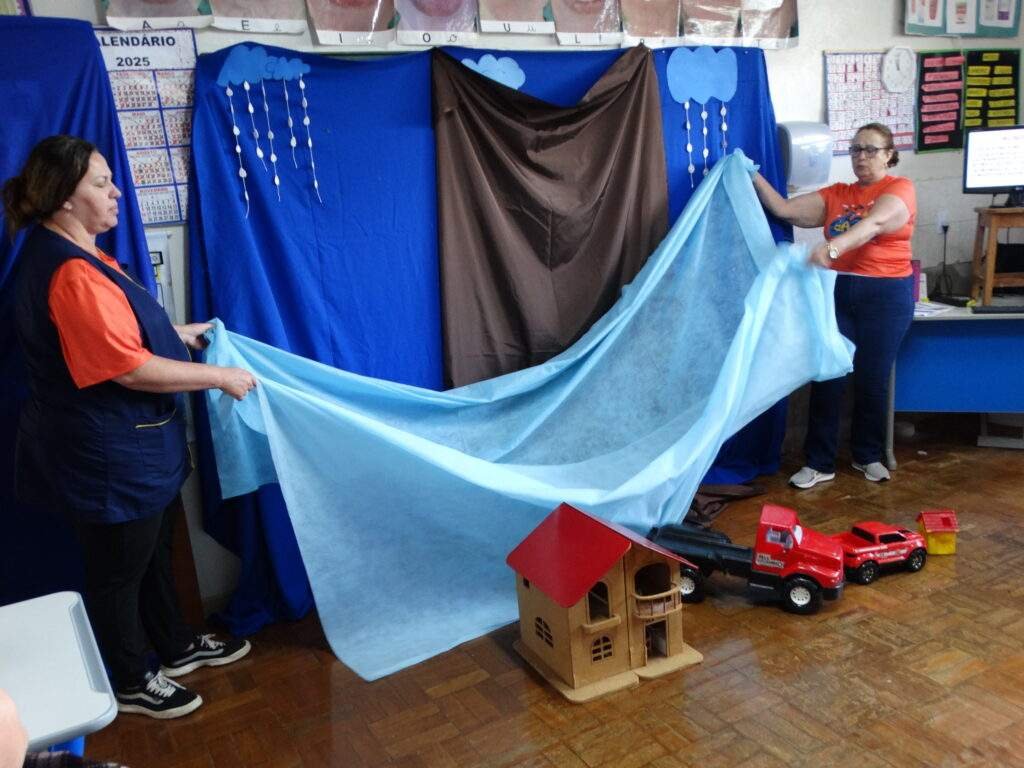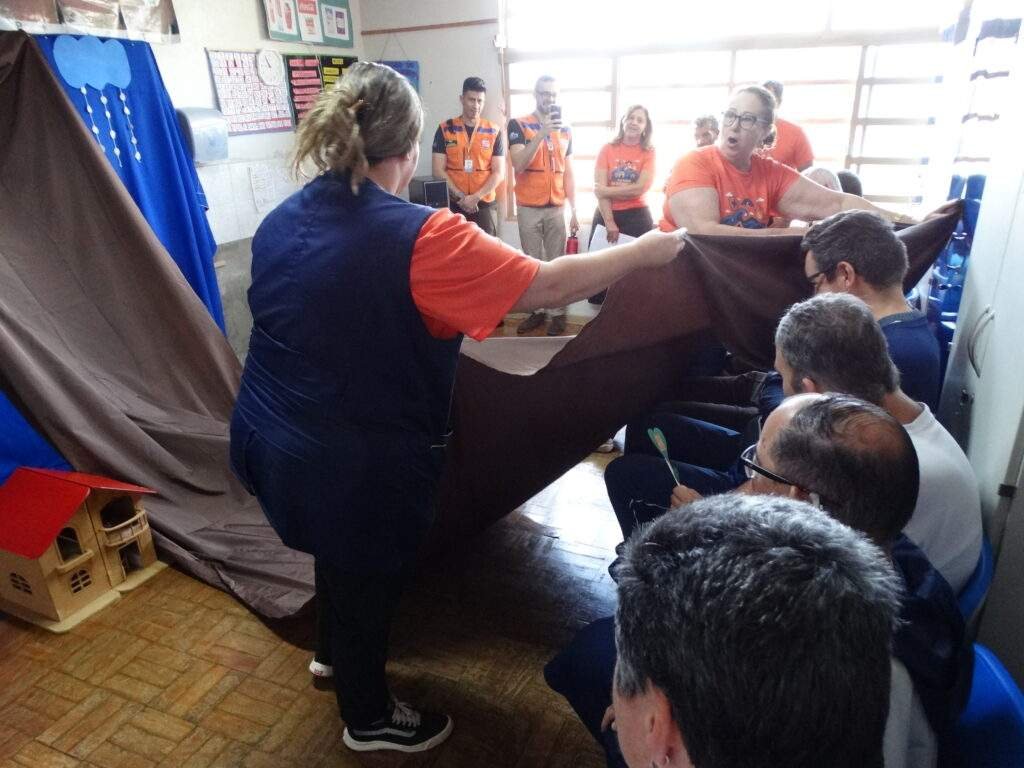 Durante a semana, brigadistas, professores e alunos passaram por oficinas temáticas, com atividades práticas sobre prevenção, mitigação e preparação para situações como chuvas intensas, alagamentos e tempestades.